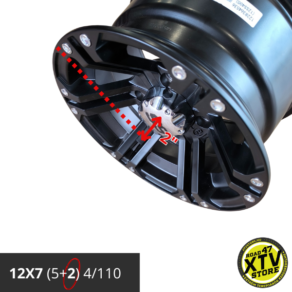 Konkrét példa egy quad alufelni méreteinek értelmezésére: az ITP Hurricane 12×7 – 5+2 – 4/110 példáján