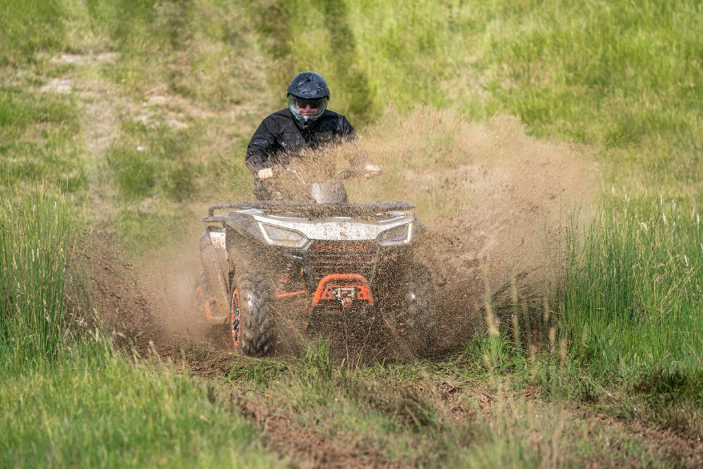 A legújabb generációs folyadékhűtéses négyütemű egyhengeres, 570 köbcentiméteres motor 44 LE teljesítménnyel és 48 Nm nyomatékkal rendelkezik. A kategória legerősebbjei közé tartozik, így a legmeredekebb emelkedő vagy nehéz rönkök vontatása sem akadály.